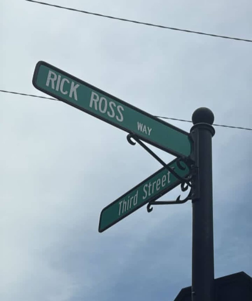 Hari indi foto kandi ikigaragaza cyamanitswe kiranga ko uwo muhanda wiswe "Rick Ross."