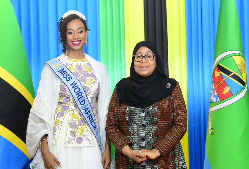 Perezida wa Tanzania, Samia Suluhu Hassan yagiranye ibiganiro na Miss World 2025, Hasset Dereje n'Igisonga cye cyo muri Ethiopia, Hasset Dereje, bavuga akari ku mutima.