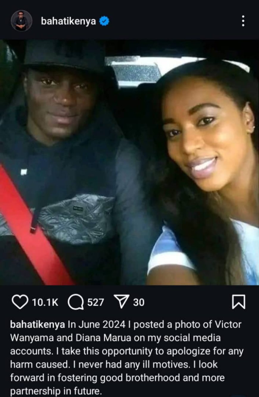 Yagize ati:”Muri Kamena 2024, nasangije abakoresha urubuga rwa Instagram ifoto umugore wanjye, Diana Marua, yifotozanyije na Victor Wanyama. Mfashe uyu mwanya ngo nisegure ku bo byaba byaragizeho ingaruka cyangwa bataramenye ukuri bakagendera ku bihuha. Munyumve ntabwo nari ngamije inabi.”