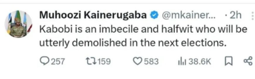 Gen. Muhoozi Kainerugaba uri mu nshingano zo kuba Umugaba mukuru w'Ingabo za Uganda akaba n'umujyanama mukuru wa Perezida Museveni mu bya gisirikare, yabwiye amagambo akomeye Bobi Wine arimo kumwita 'ikigoryi' anamuteguza ko azakubitwa inshuro mu matora bimirije imbere.