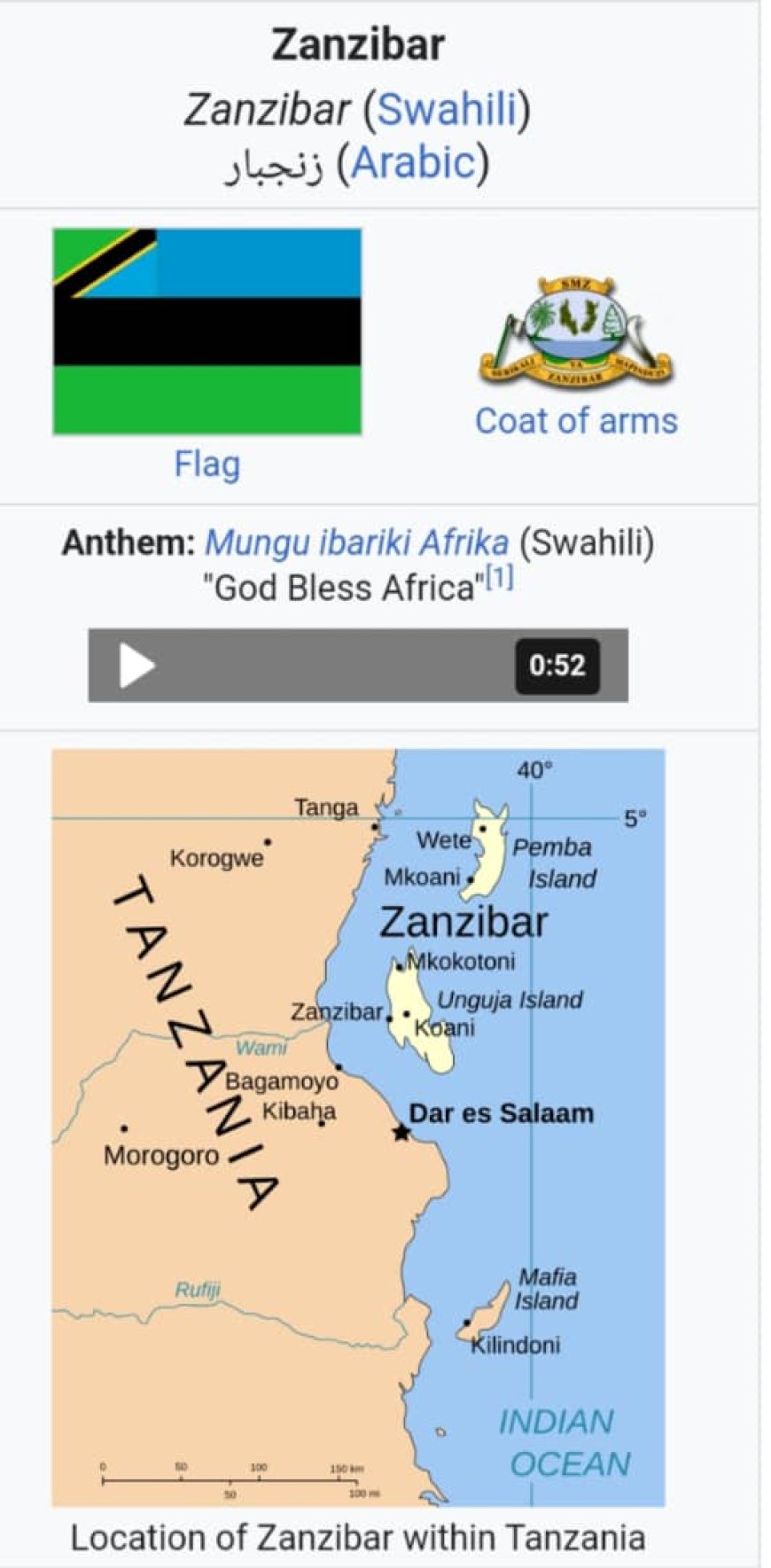 Zanzibar iherereye mu Nyanja y'Abahinde