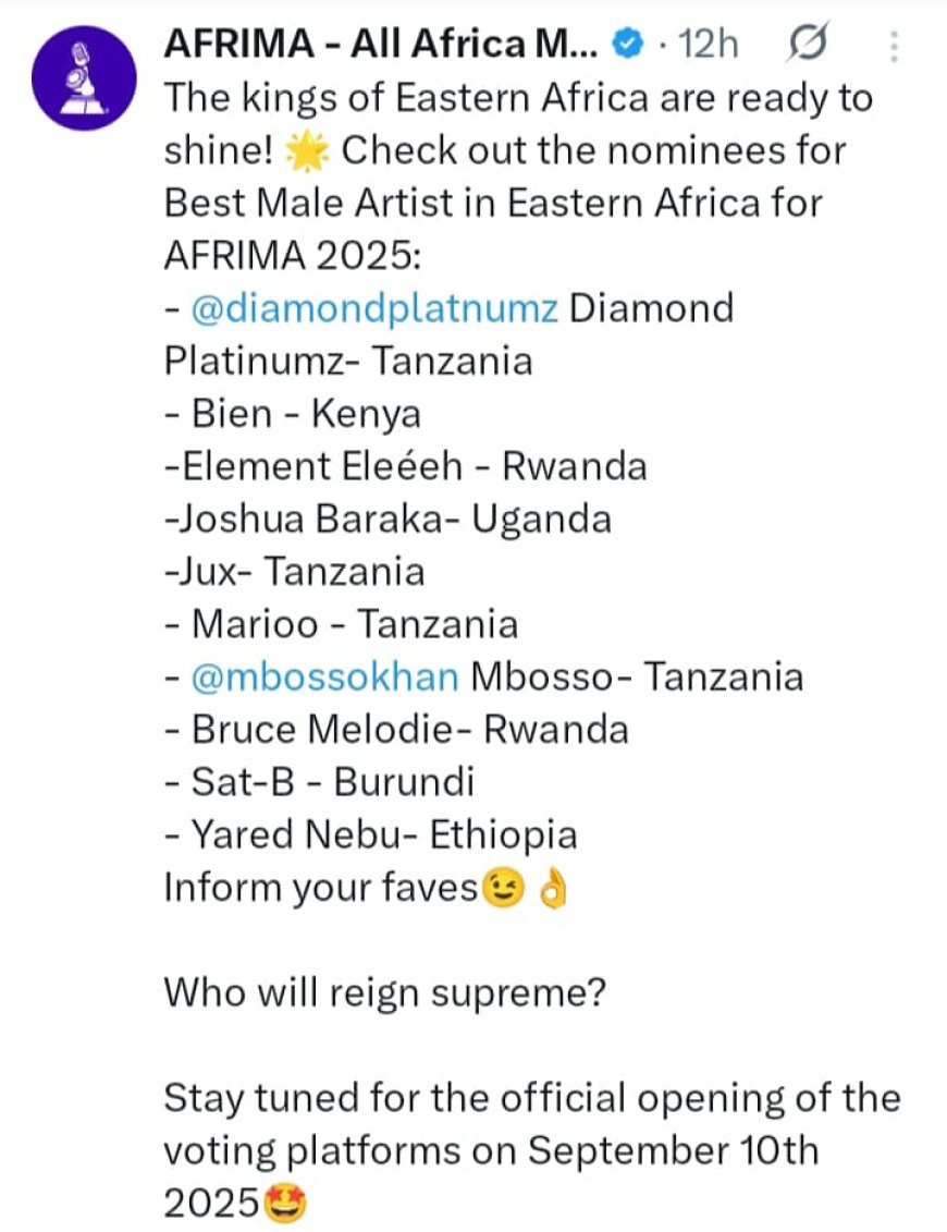 Mu ijoro ryo ku wa Gatatu nibwo byamenyekanye ko hashyizwe hanze abahataniye ibihembo bizwi nka 'AFRIMA' bizongera gutangwa mu mpera z'uyu mwaka wa 2025. Abahanzi nyarwanda babihataniye ni Bruce Melodie na Element Eleeeh.