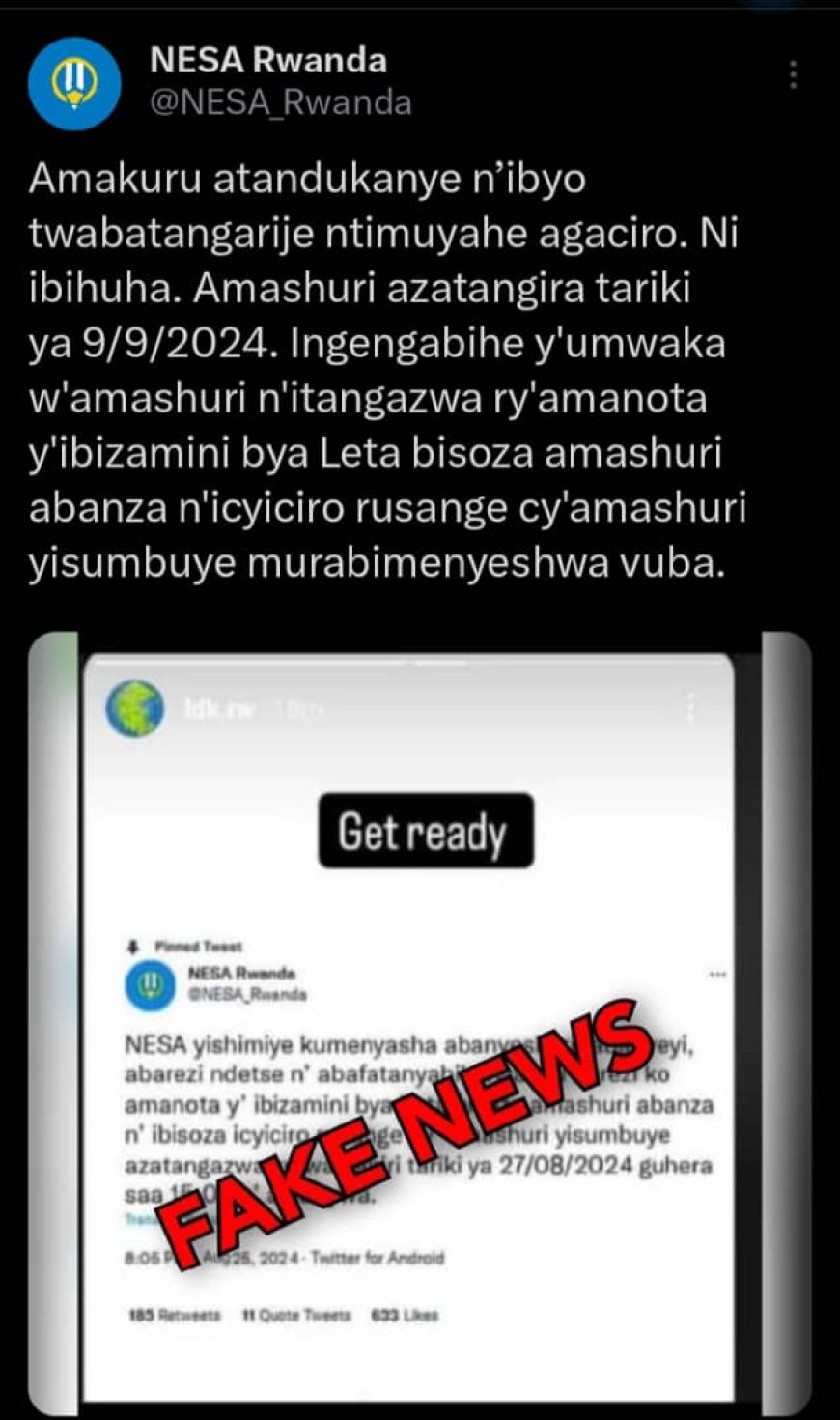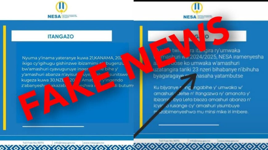 Nyuma y’amakuru yakurikiye ibyatangajwe n’ Ikigo cy’igihugu gishinzwe Ibizamini n’ Ubugenzuzi bw’Amashuri (NESA), avuga ko amashuri abanza n’ayisumbuye atazatangira ku itariki ya 09 Nzeri, ahubwo azatangira ku wa 23 Nzeri, NESA yavuze ko ari ibihuha ikangurira abantu kudaha agaciro amakuru atandukanye n’ayo babatangarije.