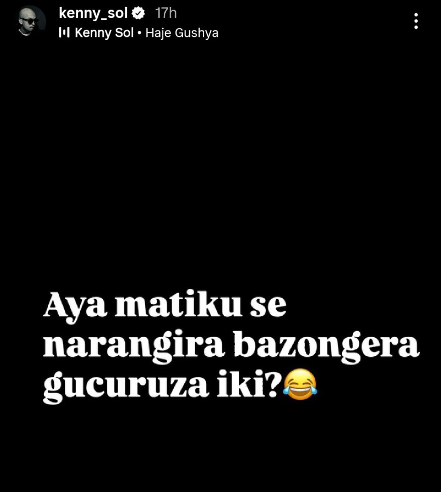 Mu bundi butumwa Kenny Sol yanditse agaruka kuri aba bahanzi bakuru mu muziki nyarwanda, hari aho yanditse ati: "Aya matike se narangira bazongera gucuruza iki?"