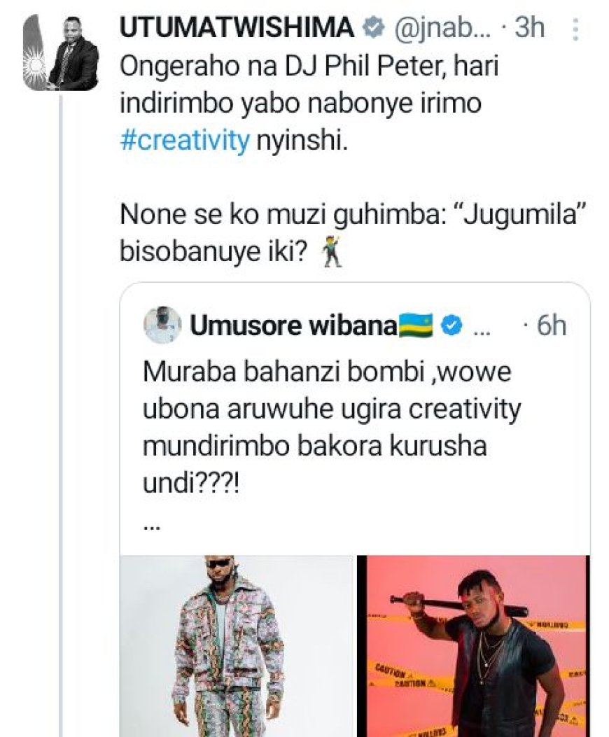 Abinyujije ku rukuta rwe rwa X yahoze yitwa Twitter, Dr. Jean Nepo Utumatwishima Abdallah yagaragaje ko indirimbo Jugumila ya ya Phil Peter yahurijemo Chris Eazy na Kevin Kade, ko nawe ari mu mubare munini w'abanyarwanda bakiriye neza iyi ndirimbo agaragaza ko yuzuyemo udushya twinshi.