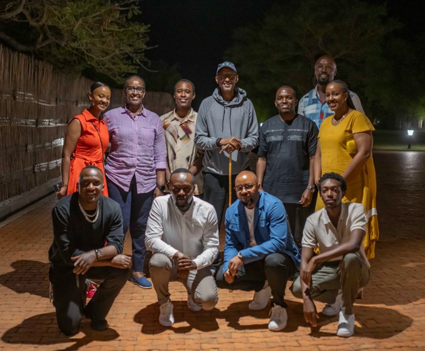 Amafoto yakurikiye ubwo butumwa agaragaramo Perezida Paul Kagame na Madamu Jeannette Kagame baganira n'abahanzi barimo Butera Knowless, Tom Close, Platin P, Ishimwe Karake Clement, Nel Ngabo n'abandi.