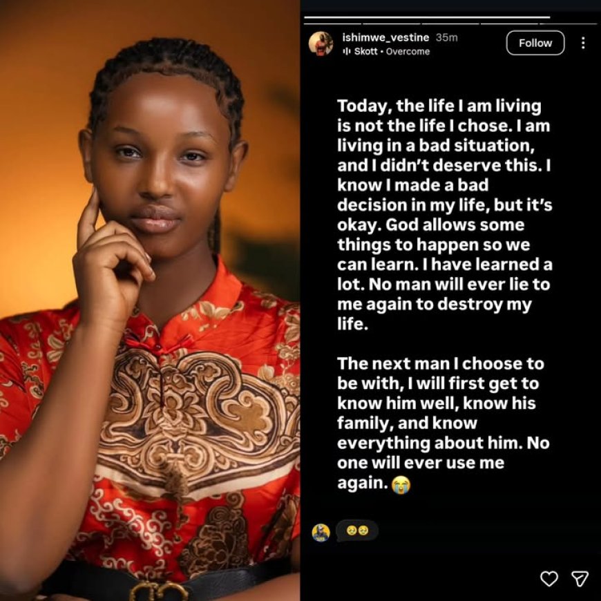 Muri ubu butumwa buri mu rurimi rw’Icyongereza, Vestine yavuze ko abayeho ubuzima atishimiye ndetse yagize amahitamo mabi.