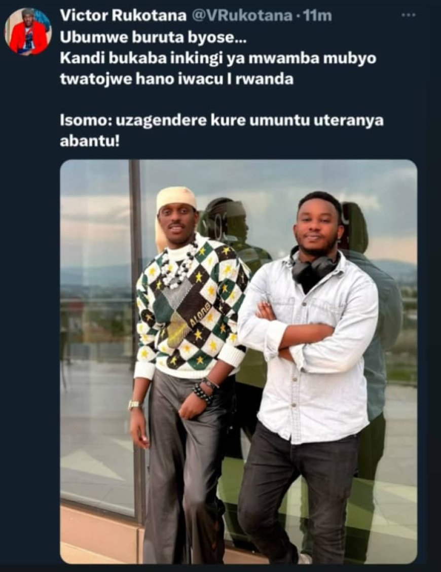Yagize ati:”Ubumwe buruta byose kandi bukaba inkingi ya mwamba mu byo twatojwe hano iwacu i Rwanda. Isomo: Uzagendere kure umuntu uteranya abantu!”